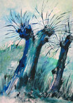 2007blauwe tinten vormen hier een knotwilg op papier