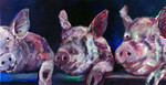 2007drie biggen leunen lekker tegen het schot en kijken de wijde wereld in, ingelijst in zilverkleurige lijst