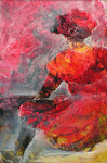 2008felle roden op papier gezet met hier en daar wat goud, het resultaat was een echte 'sunset' met passepartout en lijst