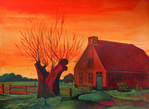 2007met rood, wit en groen is op dit doek een stralende knotwilg ontstaan