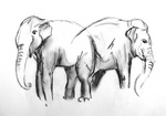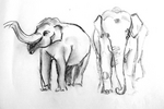 2005tijdens schetsen in Artis werk je aan meerdere schetsen tegelijk, hierdoor krijg je soms hele leuke combinaties. lijnen van twee schetsen lopen door elkaar heen. met passe-partout